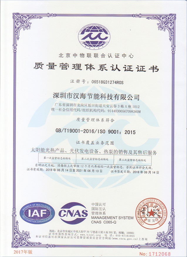 深圳市漢海節(jié)能科技有限公司成立于2011年,注冊(cè)資金6000萬(wàn)元,總部設(shè)在深圳,是一家集設(shè)計(jì)、研發(fā)、施工于一體的專(zhuān)業(yè)化從事太陽(yáng)能中央熱水工程、熱泵中央熱水工程、中央空調(diào)、光伏發(fā)電、水處理等新能源及節(jié)能環(huán)保行業(yè)的綜合服務(wù)商和工程商。在將近10年的發(fā)展歷程中,始終走在行業(yè)發(fā)展的前沿,是專(zhuān)業(yè)從事太陽(yáng)能光熱、光伏,空氣源、太陽(yáng)能熱水工程、水源熱泵,中央空調(diào),水處理產(chǎn)品的設(shè)計(jì)、安裝、售后服務(wù)為一體的高新技術(shù)企業(yè);是專(zhuān)業(yè)提供太陽(yáng)能中央熱水工程、熱泵中央熱水工程、中央空調(diào)工程、光伏發(fā)電工程、水處理工程、太陽(yáng)能熱水工程等全面解決方案的供應(yīng)商和工程商,產(chǎn)品涵蓋太陽(yáng)能集熱器、空氣源熱泵、水源熱泵、中央空調(diào)、光伏組件、太陽(yáng)能熱水工程等,是新能源的倡導(dǎo)者和推動(dòng)者。公司成立以來(lái),始終秉承“誠(chéng)信、責(zé)任、專(zhuān)業(yè)、高效”的服務(wù)宗旨,以市場(chǎng)需求為導(dǎo)向,以為客戶(hù)創(chuàng)造價(jià)值為己任的精神,不斷開(kāi)拓創(chuàng)新,通過(guò)多年的快速發(fā)展,公司綜合實(shí)力躍居行業(yè)前列。漢海擁有一支經(jīng)驗(yàn)豐富、善打硬仗的專(zhuān)業(yè)高效團(tuán)隊(duì);擁有一批專(zhuān)業(yè)的高級(jí)工程師、中級(jí)工程師、二級(jí)建造師、造價(jià)工程師、電氣設(shè)計(jì)師、給排水設(shè)計(jì)師;擁有一批機(jī)電、安防、水、電等專(zhuān)業(yè)技術(shù)施工和售后人員,配備先進(jìn)齊全,實(shí)力雄厚,技術(shù)領(lǐng)先。漢海以質(zhì)量樹(shù)信譽(yù)、以工藝立標(biāo)桿、以管理創(chuàng)效益、以服務(wù)得人心,工藝水平在業(yè)界獨(dú)樹(shù)一幟,成為行業(yè)模仿的典范。漢海承建的機(jī)電工程(設(shè)計(jì)、施工)涉及星級(jí)酒店、賓館、高檔辦公樓、花園別墅、住宅小區(qū)、學(xué)校、水療中心、工廠(chǎng)等各種類(lèi)型的工程,工程項(xiàng)目遍布全國(guó)各地。漢海將致力于成為全球信賴(lài)的新能源綜合服務(wù)商,為客戶(hù)提供新能源的全方位解決方案。未來(lái),漢海將依托國(guó)家政策,積極開(kāi)拓粵港澳大灣區(qū)、中國(guó)特色社會(huì)主義先行示范區(qū)市場(chǎng)及“一帶一路”沿線(xiàn)國(guó)際市場(chǎng),推動(dòng)新能源的新輝煌。